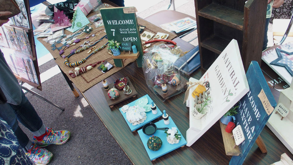 心を込めたハンドメイド雑貨を出店し、お客様との会話も弾みます。